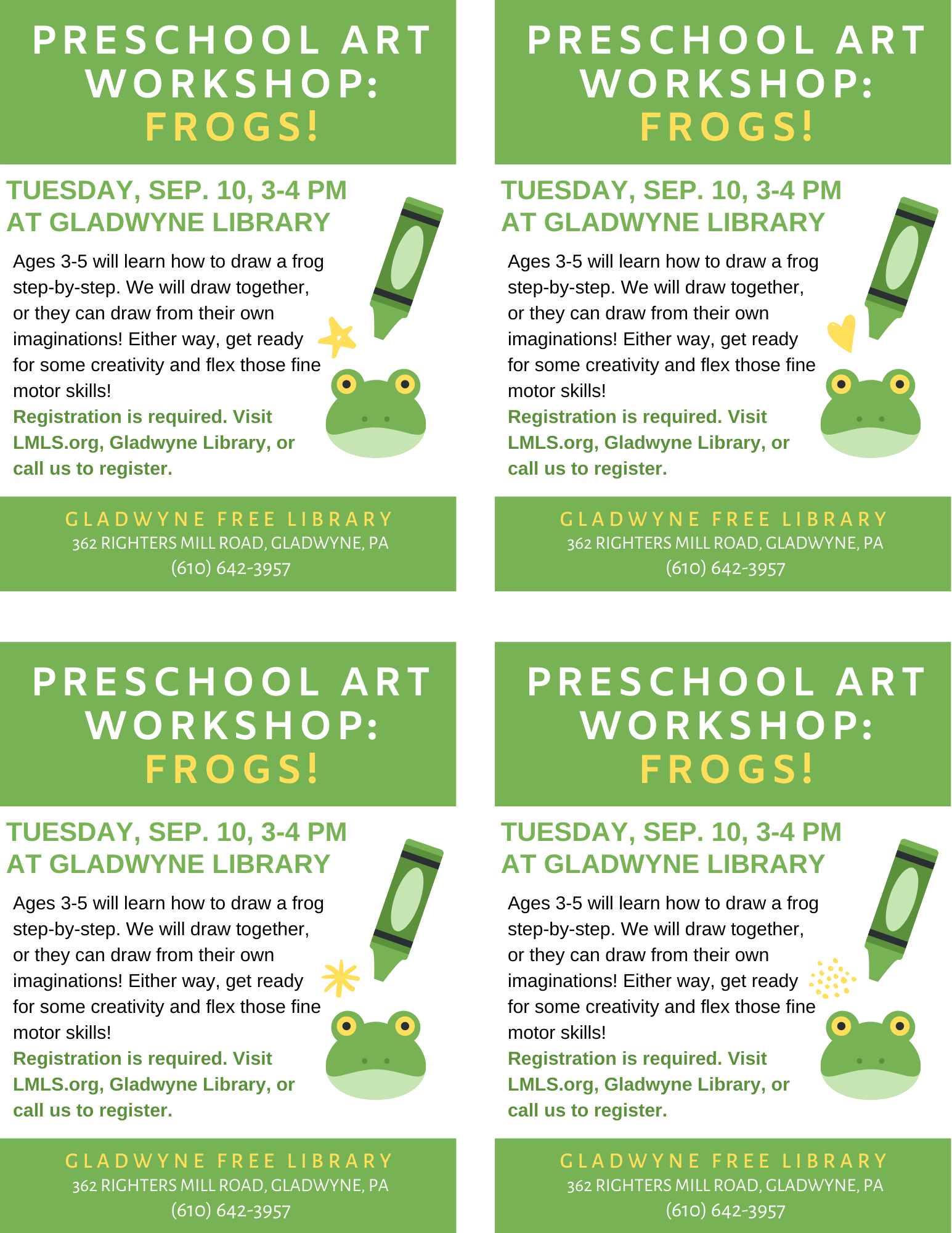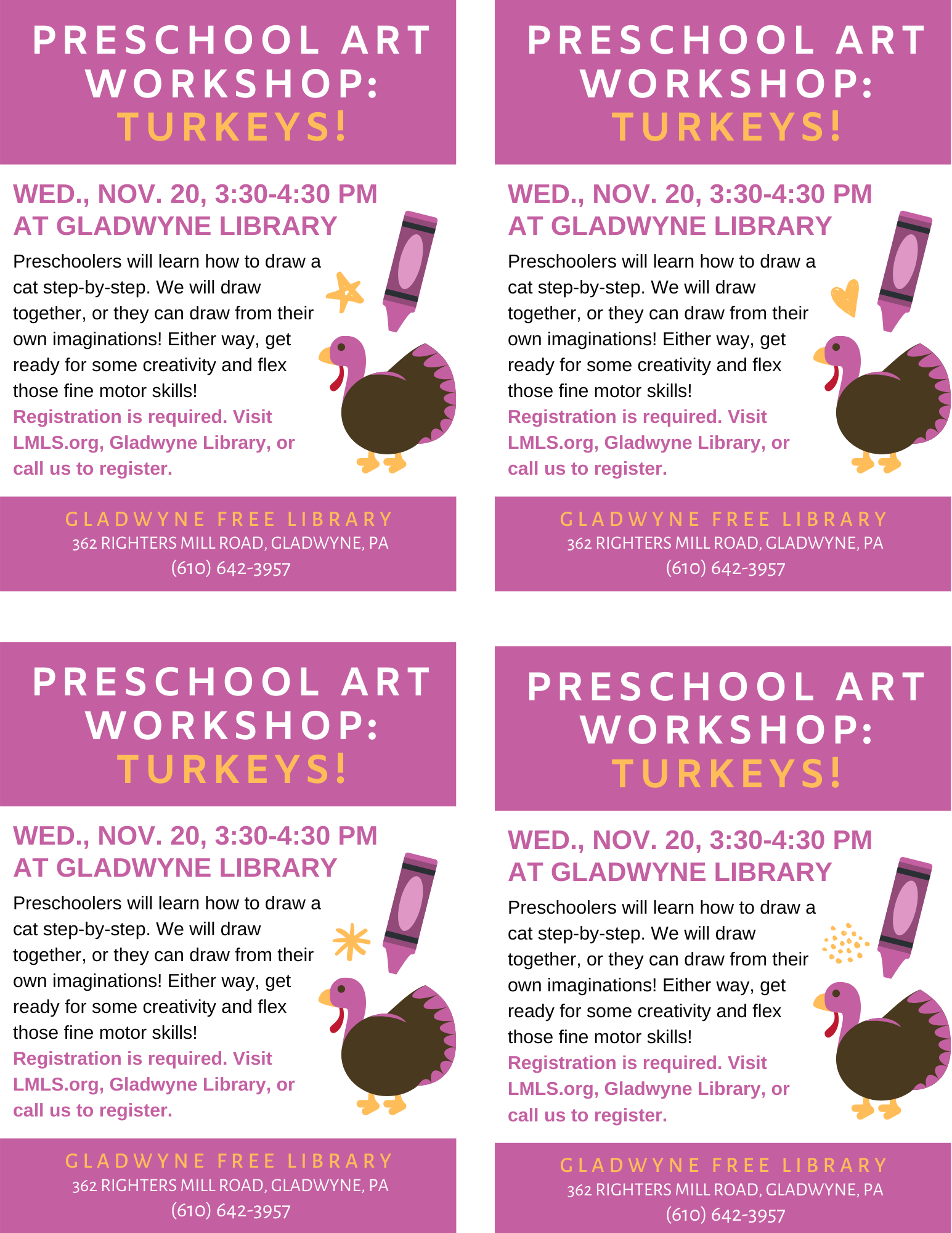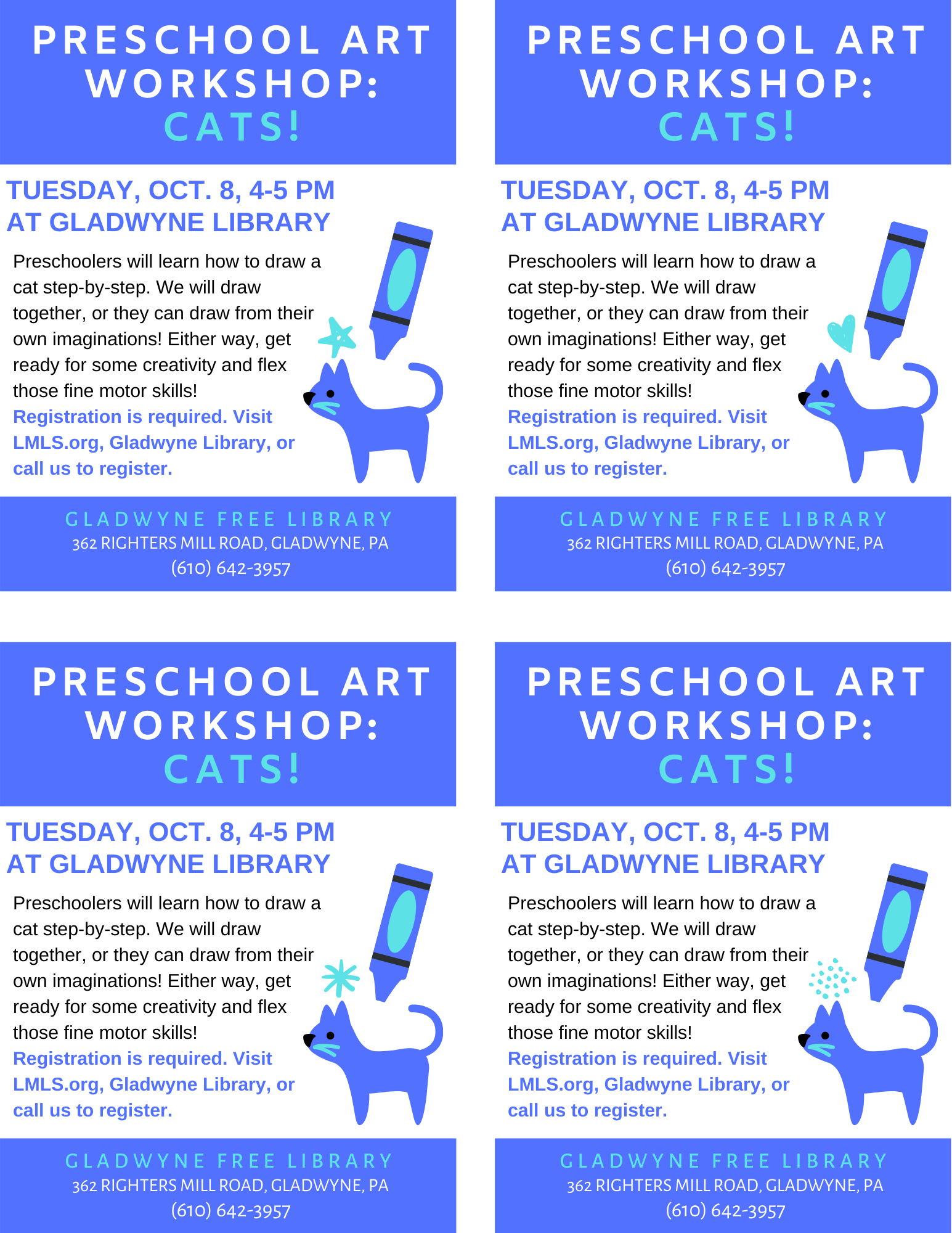 Preschool Art Class Poster for Gladwyne Library