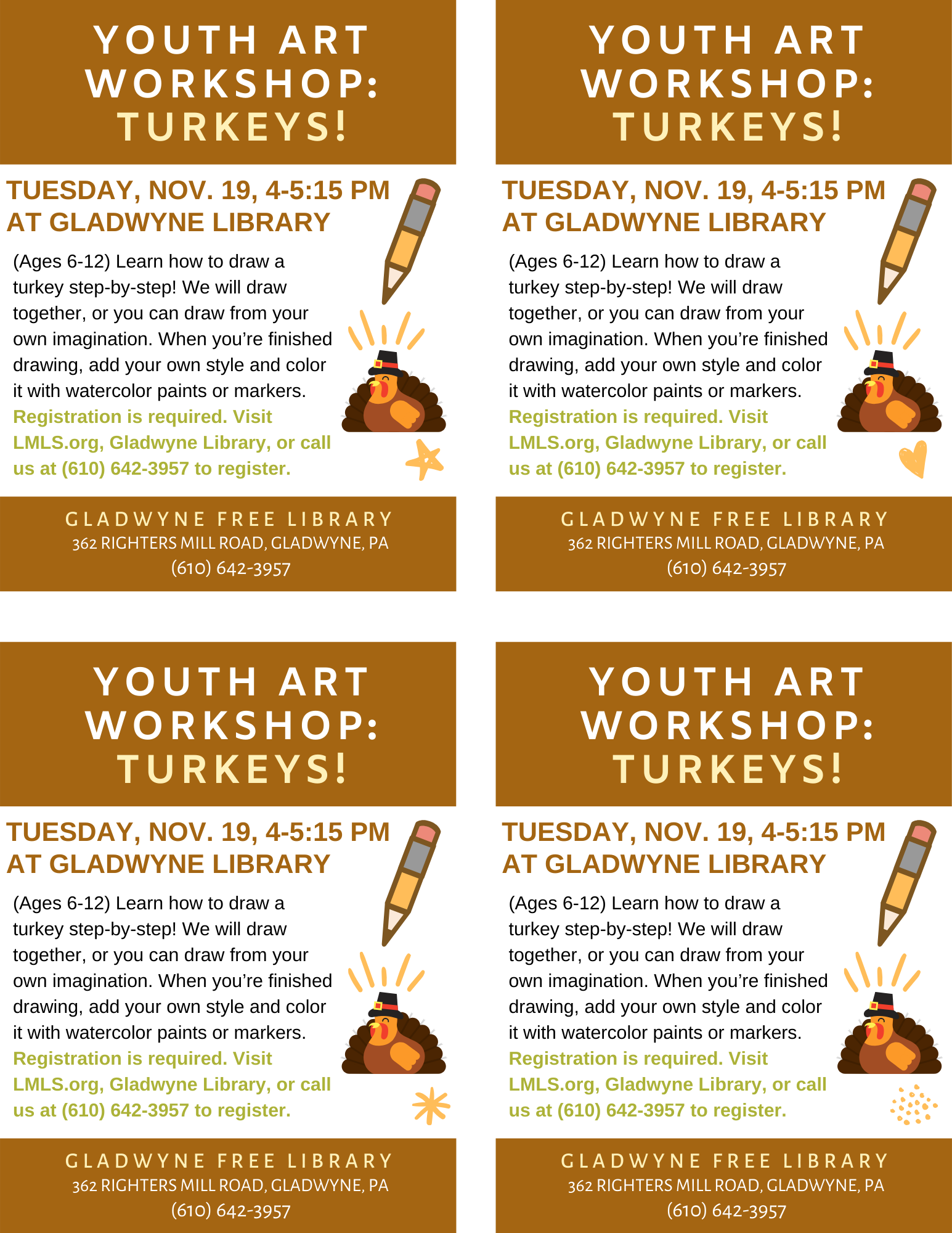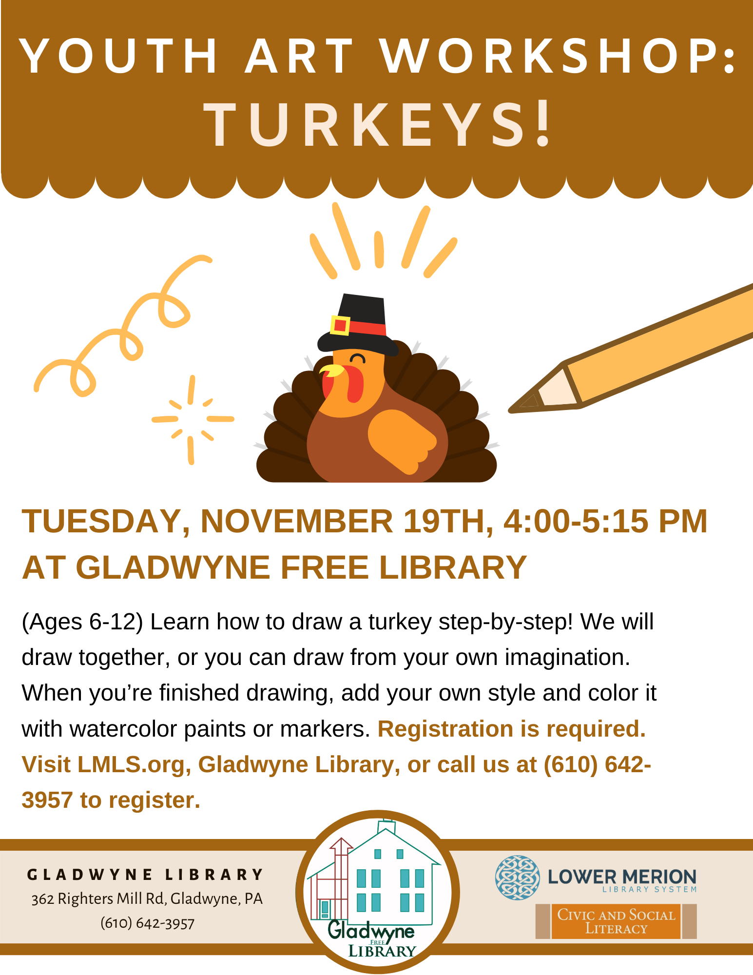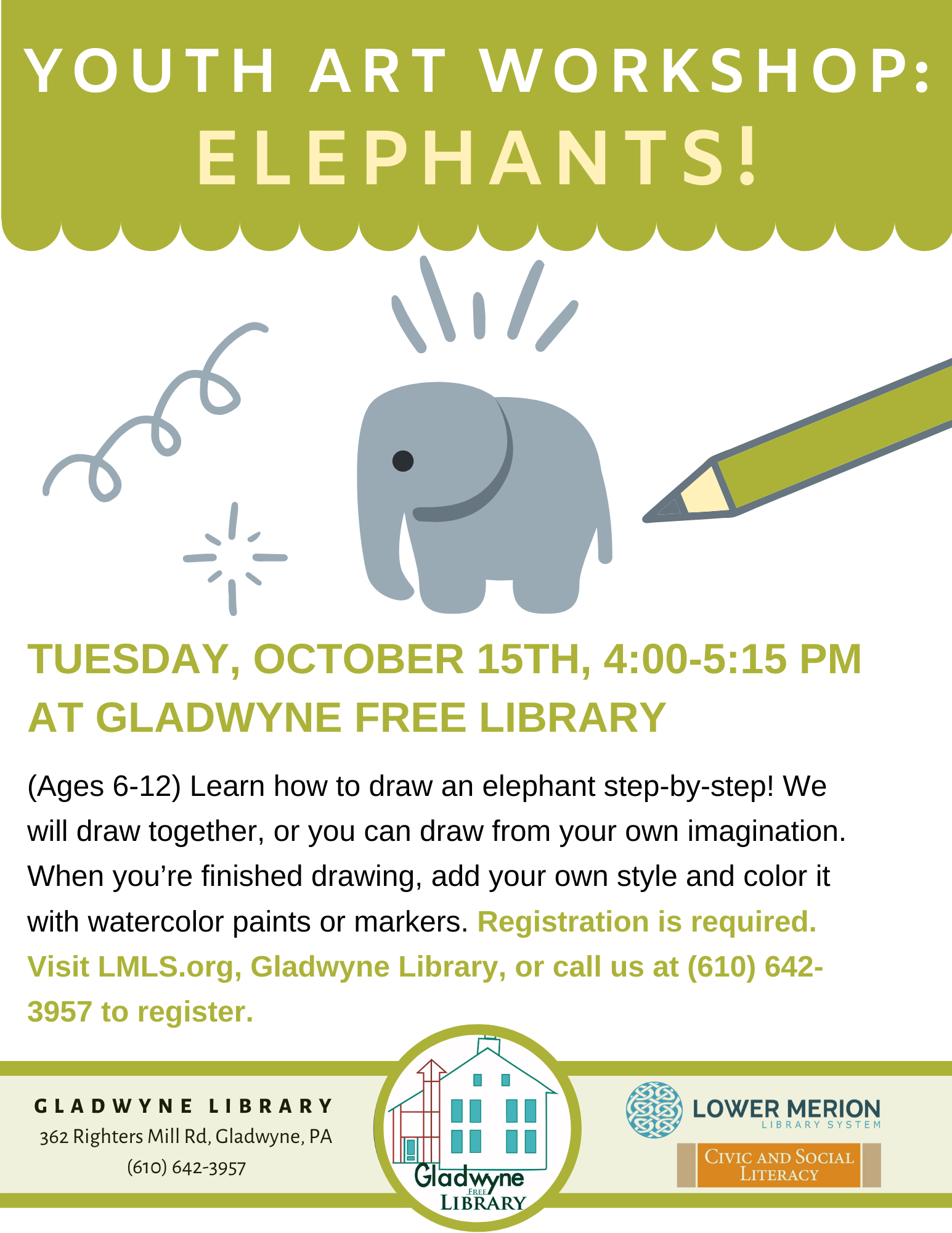 Youth Art Class Poster for Gladwyne Library